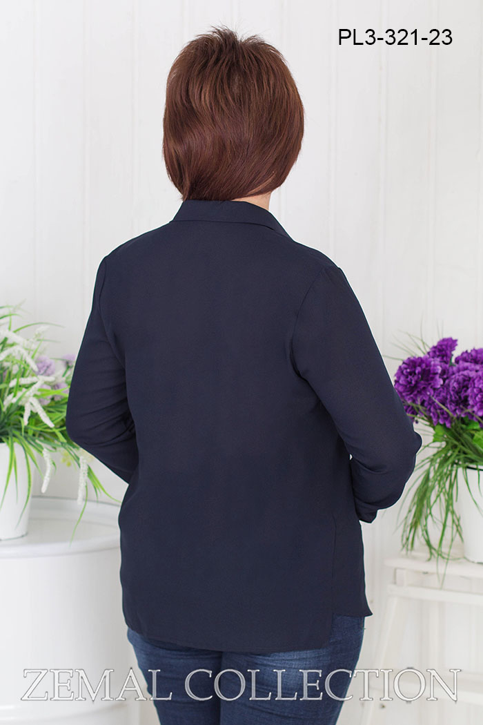 Классическая блуза из легкой ткани полуприлегающего силуэта. Спинка длиннее полочек. Воротник на цельнокроеной стойке. Застёжка в виде планки с пуговицами, планка цельнокроеная с полочкой. Длинный рукав заканчивается узенькой манжетой на пуговицеПрои.. Читать полностью