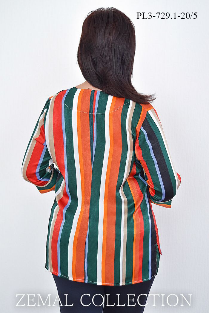 Доступные размеры :[52, 54] Шелкова блуза полуприлегающего силуэта для дам с пышными формами. Рукав короткий на широкой манжете. Вырез горловины V- образной формы с планками освежающего белого цвета. Низ переда с закруглёнными краями. В боковых швах .. Читать полностью