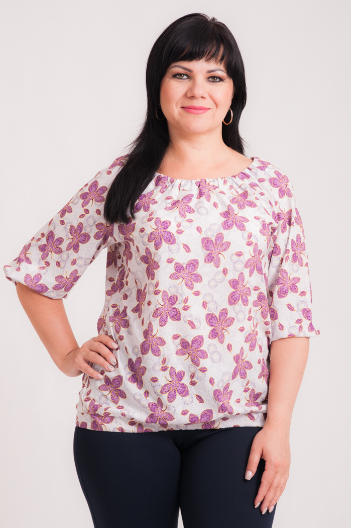 Доступные размеры :[50, 52, 54, 56] Блуза из фактурного шифона с рукавами – реглан. Рукав короткий. Бейка горловины, пояс низа, низки рукавов собраны на резинкуПроизводство: УкраинаСезон: летоТкань: вискоза софт принтСостав: Вискоза -65%, Полиэфир -3.. Читать полностью