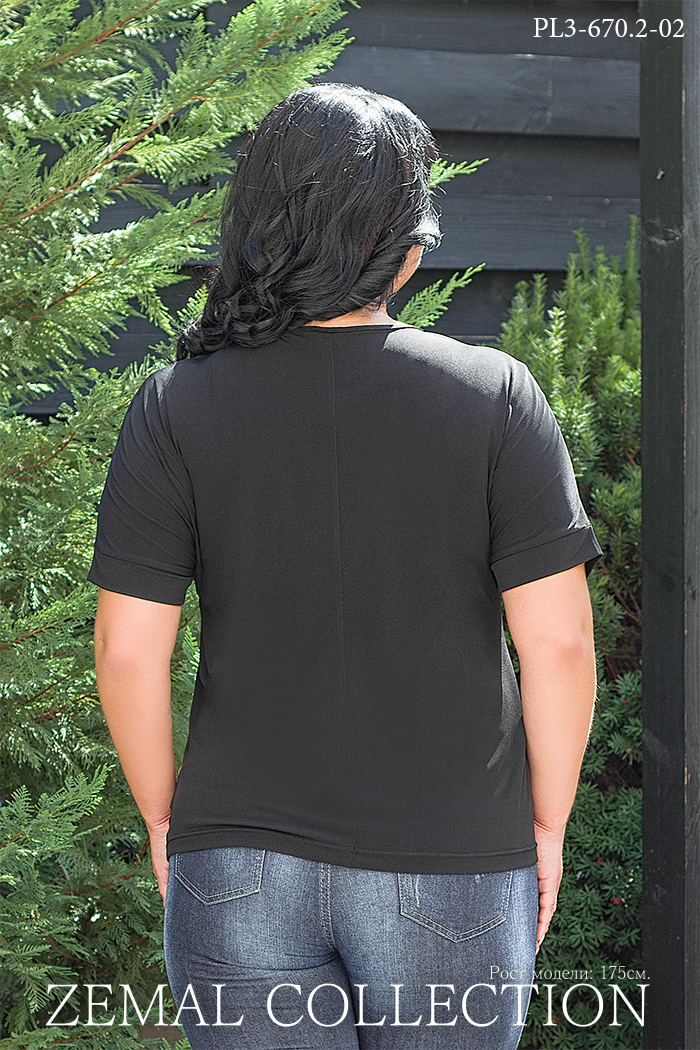 Доступные размеры :[52, 54, 56] Блуза с коротким цельнокроеным рукавом. Полочка из шифона, набранного на подкладку, спинка из трикотажной ткани (масло). По горловине полочки заложены 3 небольшие складочки. Низ рукава обработан манжетомПроизводство: У.. Читать полностью