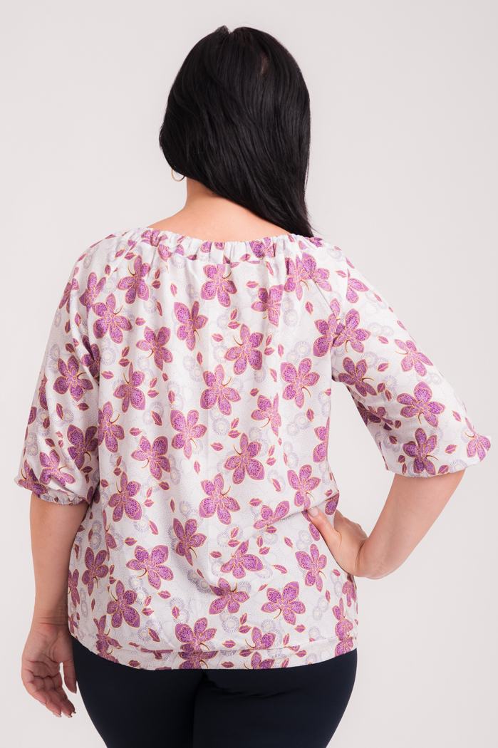 Доступные размеры :[50, 52, 54, 56] Блуза из фактурного шифона с рукавами – реглан. Рукав короткий. Бейка горловины, пояс низа, низки рукавов собраны на резинкуПроизводство: УкраинаСезон: летоТкань: вискоза софт принтСостав: Вискоза -65%, Полиэфир -3.. Читать полностью