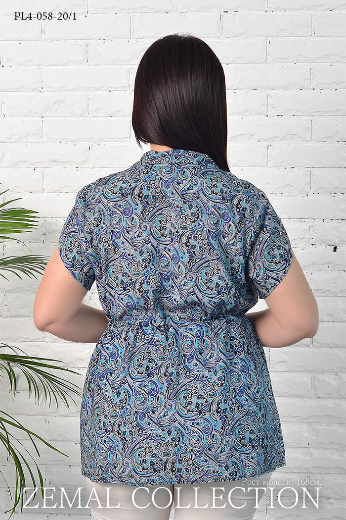 Доступные размеры :[52, 54, 56, 58] Блуза свободного силуэта из штапельного полотна. Воротник – шалька. По талии подрез с настроченной кулиской. В кулиску вдет шнур – завязка. Рукава короткие, покроя «тюльпан»Производство: УкраинаСезон: весна,летоТка.. Читать полностью