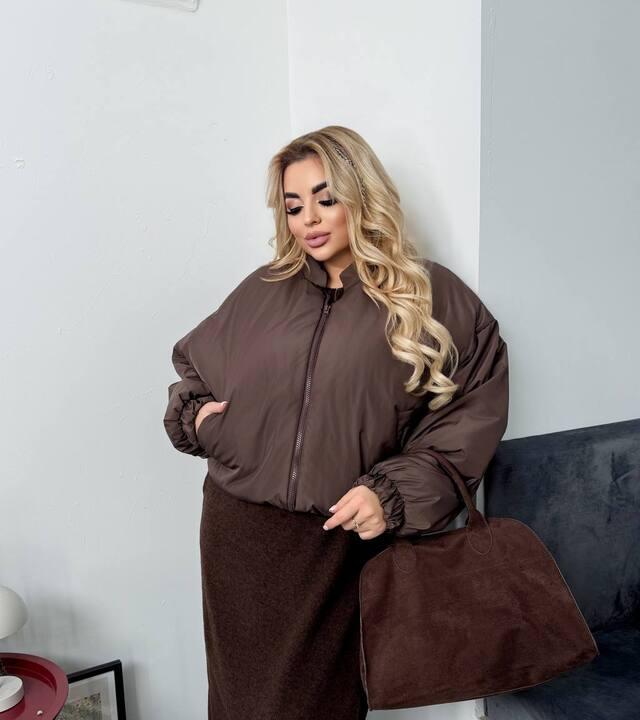 Глубокий коричневый оттенок виглядає стримано, стильно и універсально. Он легко комбинируется с вязанными платьями, трикотажными комплектами, джинсами и повседневными образами, добавляя им тепла и элегантности. Такой бомбер подойдет женщинам, которые ценят комфорт, трендовый внешний вид и возможность легко создавать стильные зимние аутфиты.