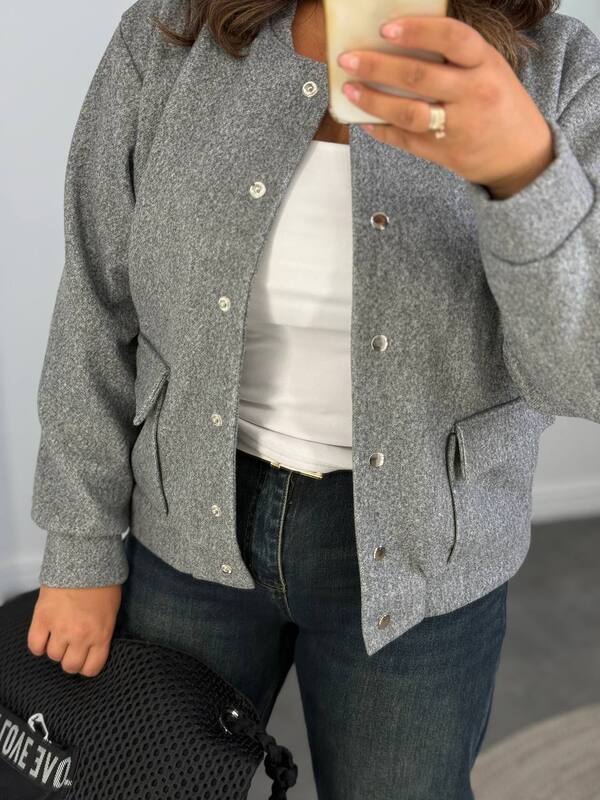 Бомбер застёгивается на металлические кнопки, что добавляет практичности и лёгкости при использовании. Накладные карманы не только функциональны, но и создают модный акцент, гармонично завершая общий вид. Длина по спинке 62–65 см обеспечивает удобную посадку и делает модель подходящей для различных типов фигуры.