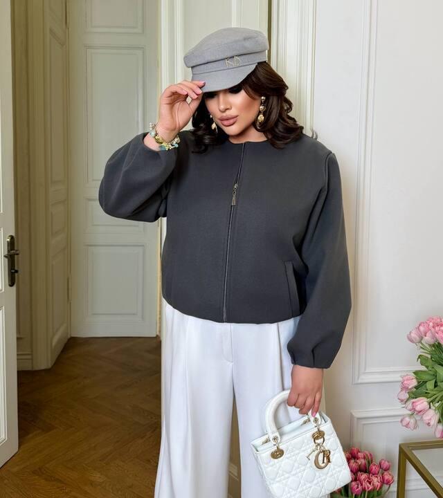Отзывы о Бомбер женский кашемировый на молнии короткий весенний большие размеры k-128272