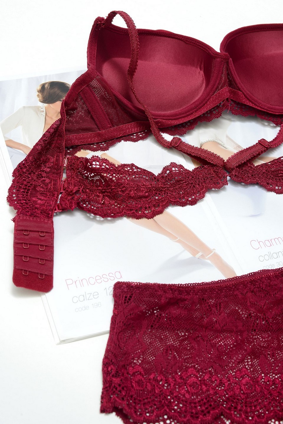 Доступные размеры :[85 B трусики XL] Роскошный кружевной комплект, сочетающий элегантность и удобство. Регулируемые и съемные бретельки с Х-образной формой на спине придают стильный вид и позволяют настроить посадку под любую фигуру. Бюст с пуш-апом .. Читать полностью