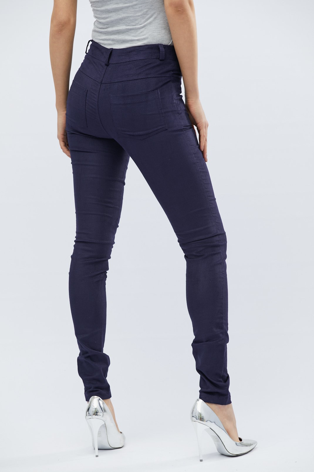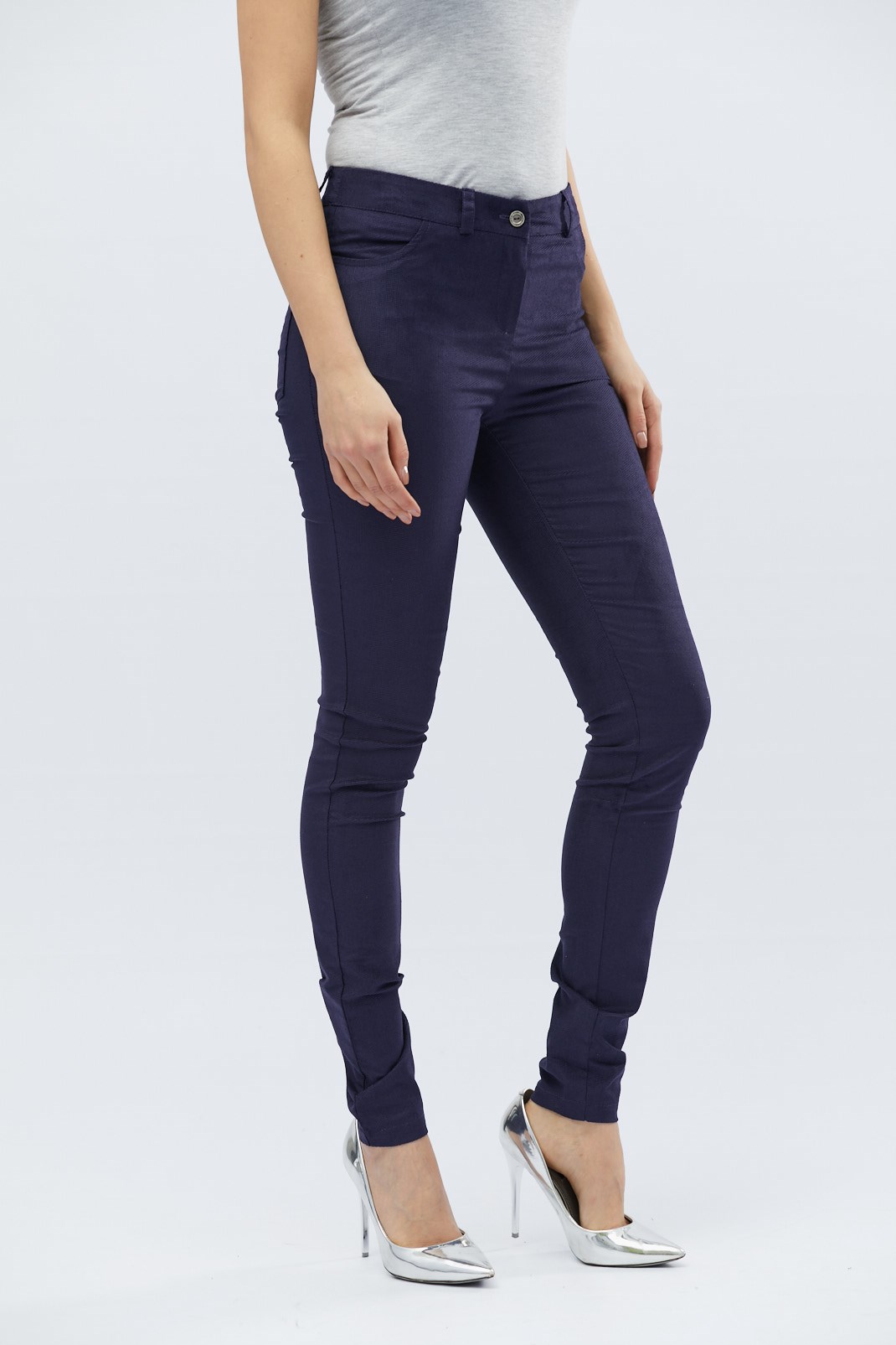 Стильные женские брюки с высокой посадкой. Зауженный силуэт выгодно подчеркнет фигуру. Спереди застежка на пуговицу и молнию. На поясе специальные петли для ремешка. Два кармана спереди и два сзади. Отличный выбор для повседневного и офисного образа.