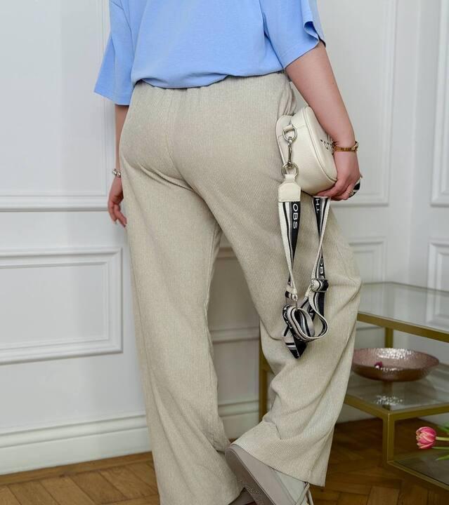Модель выполнена с высокой посадкой, благодаря чему брюки красиво подчеркивают талию и делают пропорции более гармоничными. Эластичный пояс на резинке обеспечивает удобную посадку и комфорт в течение всего дня. Такой вариант особенно практичен для активной повседневной носки, потому что не сковывает движения и позволяет чувствовать себя свободно и естественно. За счет удачного сочетания высокой посадки и широкого кроя брюки смотрятся современно и визуально вытягивают силуэт.