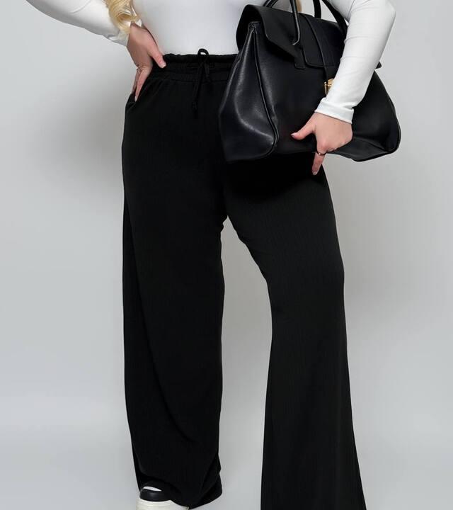 Брюки имеют высокую посадку, за счет чего красиво садятся по фигуре и делают силуэт более гармоничным. Пояс на резинке обеспечивает комфортную посадку по талии и помогает модели хорошо адаптироваться под фигуру. Свободный широкий крой делает образ легким, актуальным и очень удобным, а также визуально вытягивает силуэт. Брюки красиво ниспадают по длине, не сковывают движения и отлично подходят для женщин, которые ценят удобную одежду с хорошей посадкой и современным фасоном.