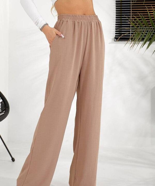 Широкий крой делает эти брюки особенно универсальными. Они красиво смотрятся как с облегающим верхом, так и с более свободными футболками, топами, рубашками, блузами, жакетами и джемперами. Пояс на резинке добавляет практичности и делает посадку более комфортной, поэтому модель хорошо садится по фигуре и подходит для ежедневной носки. Боковые карманы делают брюки еще удобнее и функциональнее, сохраняя при этом аккуратный и современный внешний вид.
