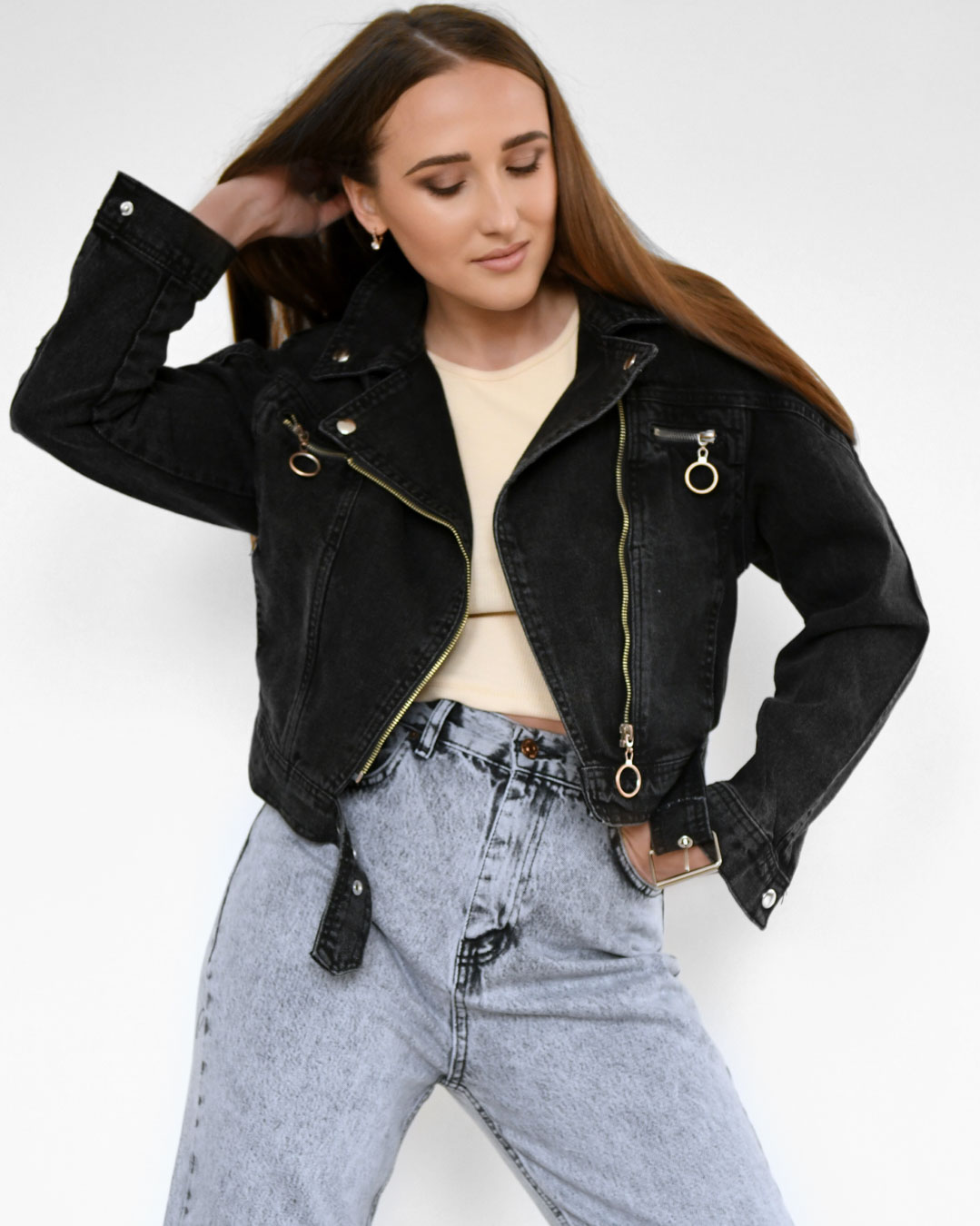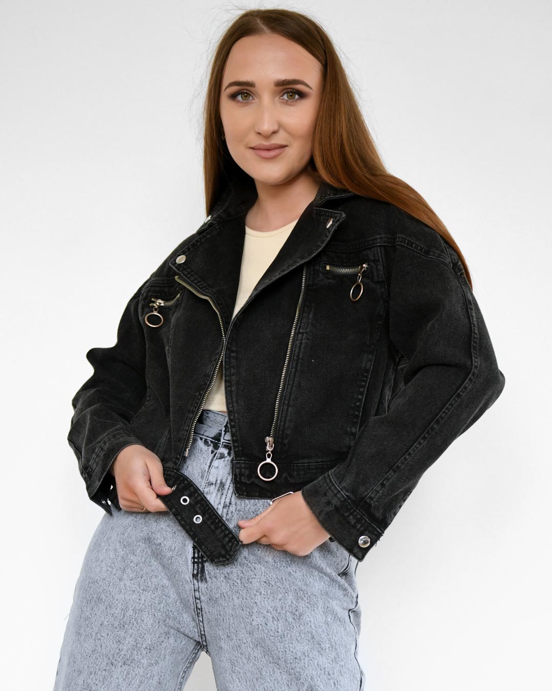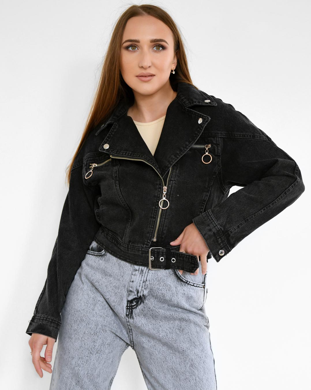 Доступные размеры :[M, L] Размер M:Рост модели:167 смДлина изделия:46Длина рукава:69Обхват груди:94Размер L:Рост модели:167 смДлина изделия:46Длина рукава:69Обхват груди:100Настоящая находка для поклонниц стильного образа — байкерская джинсовка прямо.. Читать полностью