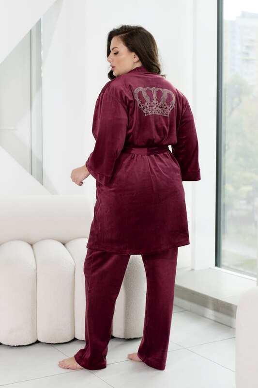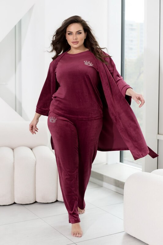 - Орієнтовні заміри готового виробу:Халат:50-52 р-р: довжина кардигана 95см, довжина рукава 57см, охват рукава 44см, ОГ - 122см, ОТ -122см, ОБ -126см.54-56 р-р: довжина кардигана 95см, довжина рукава 58см, охват рукава 48см, ОГ - 130см, ОТ -128см, ОБ -130см.58-60 р-р: довжина кардигана 95см, довжина рукава 59см, охват рукава 52см, ОГ - 140см, ОТ -138см, ОБ -140см.62-64 р-р: довжина кардигана 95см, довжина рукава 63см, охват рукава 54см, ОГ - 146см, ОТ -146см, ОБ -148см.66-68 р-р: довжина кардигана 95см, довжина рукава 63см, охват рукава 58см, ОГ - 156см, ОТ -152см, ОБ -154см.Футболка:50-52 р-р: довжина виробу: 68см, обхват рукава 34см, довжина рукава 28см, ОГ - 104см, ОТ - 100см, ОБ - 108см.54-56 р-р: довжина виробу: 68см, обхват рукава 38см, довжина рукава 32см, ОГ - 112см, ОТ - 108см, ОБ - 114см.58-60 р-р: довжина виробу: 69см, обхват рукава 38см, довжина рукава 33см, ОГ - 120см, ОТ - 116см, ОБ - 126см.62-64 р-р: довжина виробу: 72см, обхват рукава 42см, довжина рукава 36см, ОГ - 128см, ОТ - 122см, ОБ - 134см.66-68 р-р: довжина виробу: 72см, обхват рукава 44см, довжина рукава 36см, ОГ - 136см, ОТ - 132см, ОБ - 142см.Брюки:50-52 р-р: довжина штанів внутрішня 72см, довжина штанів зовнішня 99см, ОТ - 76-108см, ОБ -108см.54-56 р-р: довжина штанів внутрішня 72см, довжина штанів зовнішня 101см, ОТ - 82-116см, ОБ -116см.58-60 р-р: довжина штанів внутрішня 72см, довжина штанів зовнішня 104см, ОТ - 88-124см, ОБ -124см.62-64 р-р: довжина штанів внутрішня 74см, довжина штанів зовнішня 106см, ОТ - 100-136см, ОБ -136см.66-68 р-р: довжина штанів внутрішня 74см, довжина штанів зовнішня 108см, ОТ - 110-144см, ОБ -144см.