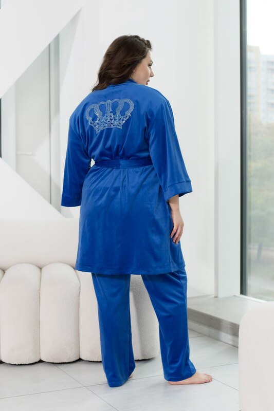 - Орієнтовні заміри готового виробу:Халат:50-52 р-р: довжина кардигана 95см, довжина рукава 57см, охват рукава 44см, ОГ - 122см, ОТ -122см, ОБ -126см.54-56 р-р: довжина кардигана 95см, довжина рукава 58см, охват рукава 48см, ОГ - 130см, ОТ -128см, ОБ -130см.58-60 р-р: довжина кардигана 95см, довжина рукава 59см, охват рукава 52см, ОГ - 140см, ОТ -138см, ОБ -140см.62-64 р-р: довжина кардигана 95см, довжина рукава 63см, охват рукава 54см, ОГ - 146см, ОТ -146см, ОБ -148см.66-68 р-р: довжина кардигана 95см, довжина рукава 63см, охват рукава 58см, ОГ - 156см, ОТ -152см, ОБ -154см.Футболка:50-52 р-р: довжина виробу: 68см, обхват рукава 34см, довжина рукава 28см, ОГ - 104см, ОТ - 100см, ОБ - 108см.54-56 р-р: довжина виробу: 68см, обхват рукава 38см, довжина рукава 32см, ОГ - 112см, ОТ - 108см, ОБ - 114см.58-60 р-р: довжина виробу: 69см, обхват рукава 38см, довжина рукава 33см, ОГ - 120см, ОТ - 116см, ОБ - 126см.62-64 р-р: довжина виробу: 72см, обхват рукава 42см, довжина рукава 36см, ОГ - 128см, ОТ - 122см, ОБ - 134см.66-68 р-р: довжина виробу: 72см, обхват рукава 44см, довжина рукава 36см, ОГ - 136см, ОТ - 132см, ОБ - 142см.Брюки:50-52 р-р: довжина штанів внутрішня 72см, довжина штанів зовнішня 99см, ОТ - 76-108см, ОБ -108см.54-56 р-р: довжина штанів внутрішня 72см, довжина штанів зовнішня 101см, ОТ - 82-116см, ОБ -116см.58-60 р-р: довжина штанів внутрішня 72см, довжина штанів зовнішня 104см, ОТ - 88-124см, ОБ -124см.62-64 р-р: довжина штанів внутрішня 74см, довжина штанів зовнішня 106см, ОТ - 100-136см, ОБ -136см.66-68 р-р: довжина штанів внутрішня 74см, довжина штанів зовнішня 108см, ОТ - 110-144см, ОБ -144см.