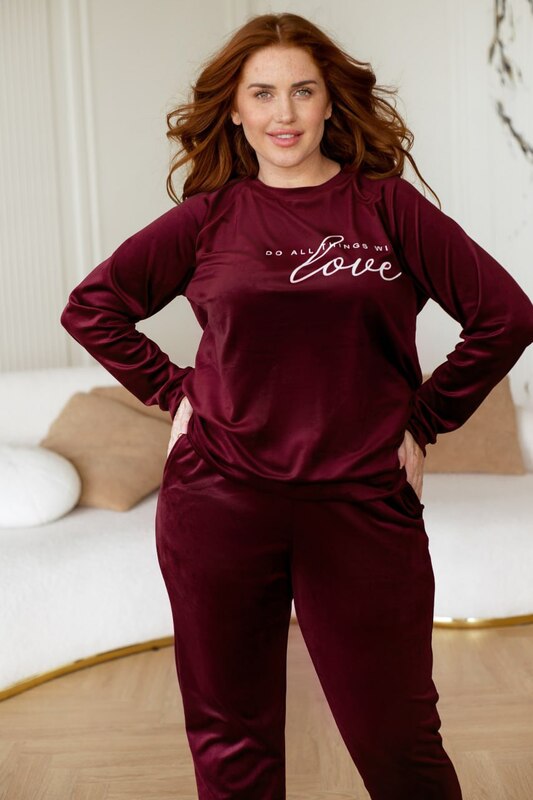 - Орієнтовні заміри готового виробу:Кофта:46-48 р-р: довжина виробу: 67см, охват рукава 38см, довжина рукава від плечового шва 72см, ОГ - 96см, ОТ - 94см, ОБ - 92см.50-52 р-р: довжина виробу: 68см, охват рукава 40см, довжина рукава від плечового шва 73см, ОГ - 104см, ОТ - 102см, ОБ - 100см.54-56 р-р: довжина виробу: 69см, охват рукава 42см, довжина рукава від плечового шва 77см, ОГ - 112см, ОТ - 110см, ОБ - 108см.58-60 р-р: довжина виробу: 71см, охват рукава 44см, довжина рукава від плечового шва 79см, ОГ - 118см, ОТ - 116см, ОБ - 114см.62-64 р-р: довжина виробу: 72см, охват рукава 50см, довжина рукава від плечового шва 80см, ОГ - 126см, ОТ - 124см, ОБ - 122см.66-68 р-р: довжина виробу: 73см, охват рукава 52см, довжина рукава від плечового шва 82см, ОГ - 134см, ОТ - 132см, ОБ - 130см.Брюки:46-48 р-р: довжина штанів по внутрішньому шву 75см, довжина штанів по зовнішньому шву з урахуванням пояса 105см, ОТ - 68-100см, ОБ -100см.50-52 р-р: довжина штанів по внутрішньому шву 76см, довжина штанів по зовнішньому шву з урахуванням пояса 106см, ОТ - 76-108см, ОБ -108см.54-56 р-р: довжина штанів по внутрішньому шву 76см, довжина штанів по зовнішньому шву з урахуванням пояса 107см, ОТ - 82-116см, ОБ -116см.58-60 р-р: довжина штанів по внутрішньому шву 77см, довжина штанів по зовнішньому шву з урахуванням пояса 109см, ОТ - 88-124см, ОБ -124см.62-64 р-р: довжина штанів по внутрішньому шву 78см, довжина штанів по зовнішньому шву з урахуванням пояса 109см, ОТ - 100-136см, ОБ -136см.66-68 р-р: довжина штанів по внутрішньому шву 79см, довжина штанів по зовнішньому шву з урахуванням пояса 110см, ОТ - 110-144см, ОБ -144см.