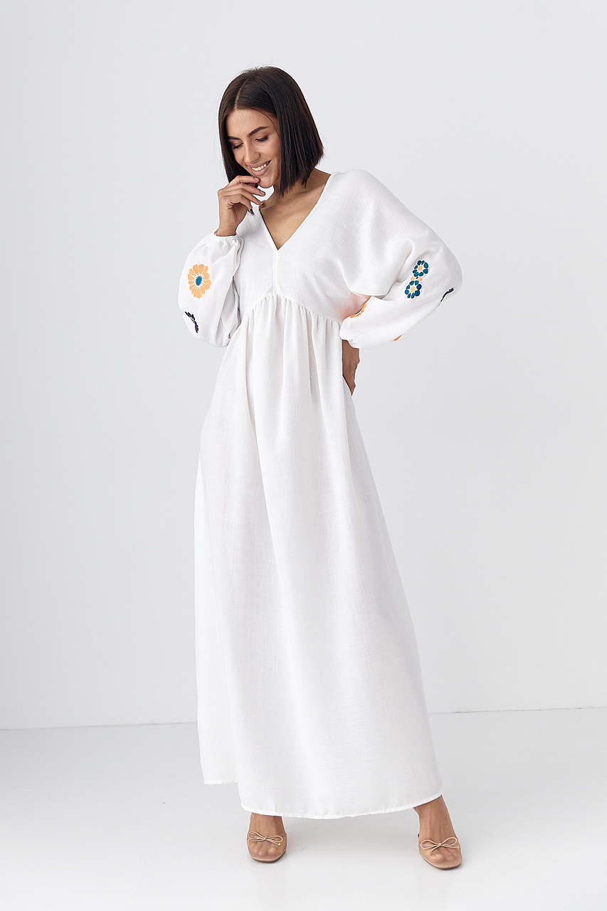Размер S:Ширина під проймами рукавів (над грудьми), см: 46смДовжина рукава від горловини, см: 66смДовжина рукава по внутрішньому шву, см: 50смШирина по стегнам: 70смШирина по талії/поясу, см: 35смДовжина виробу, см: 138смЦя довга сукня вражає своєю в.. Читать полностью
