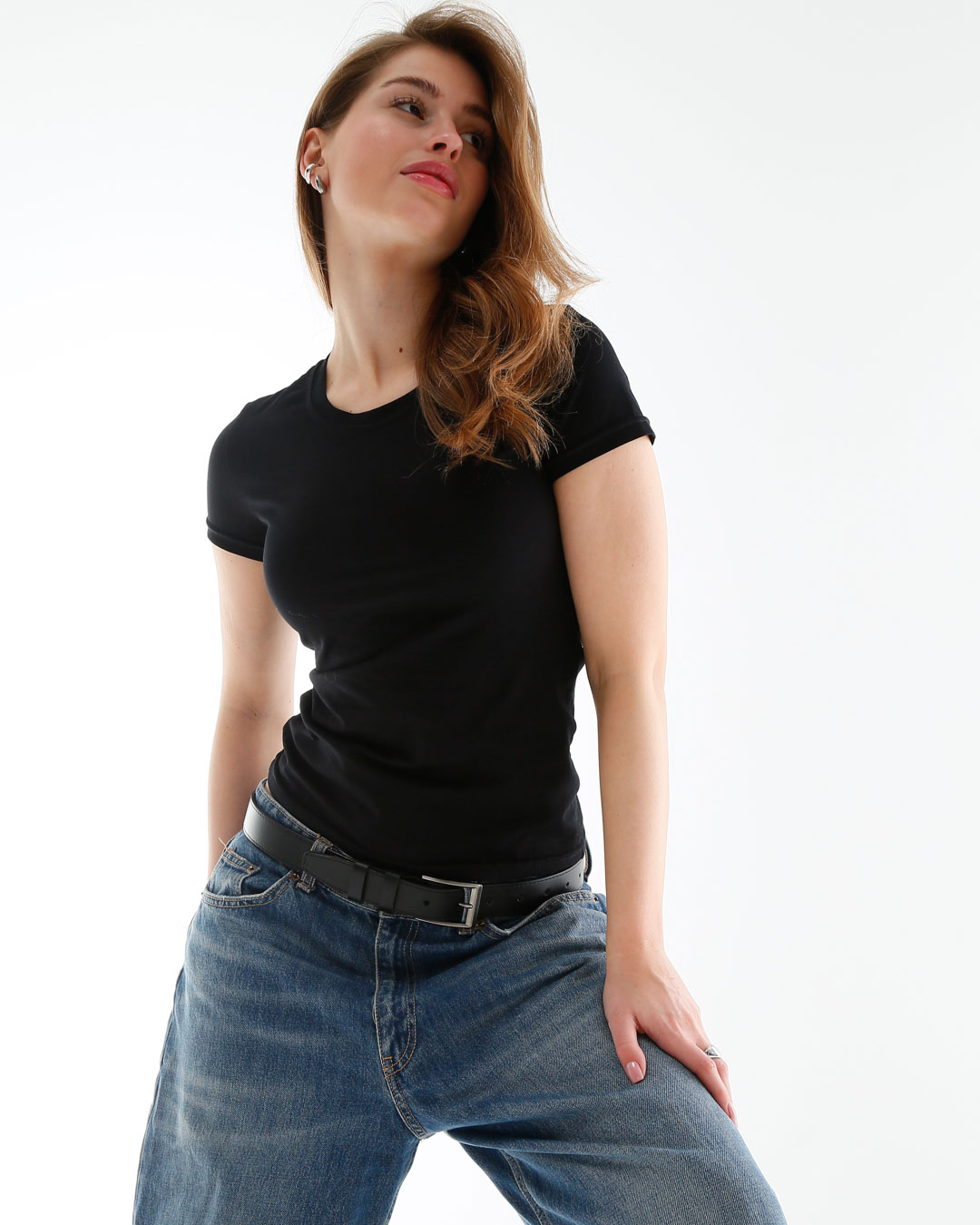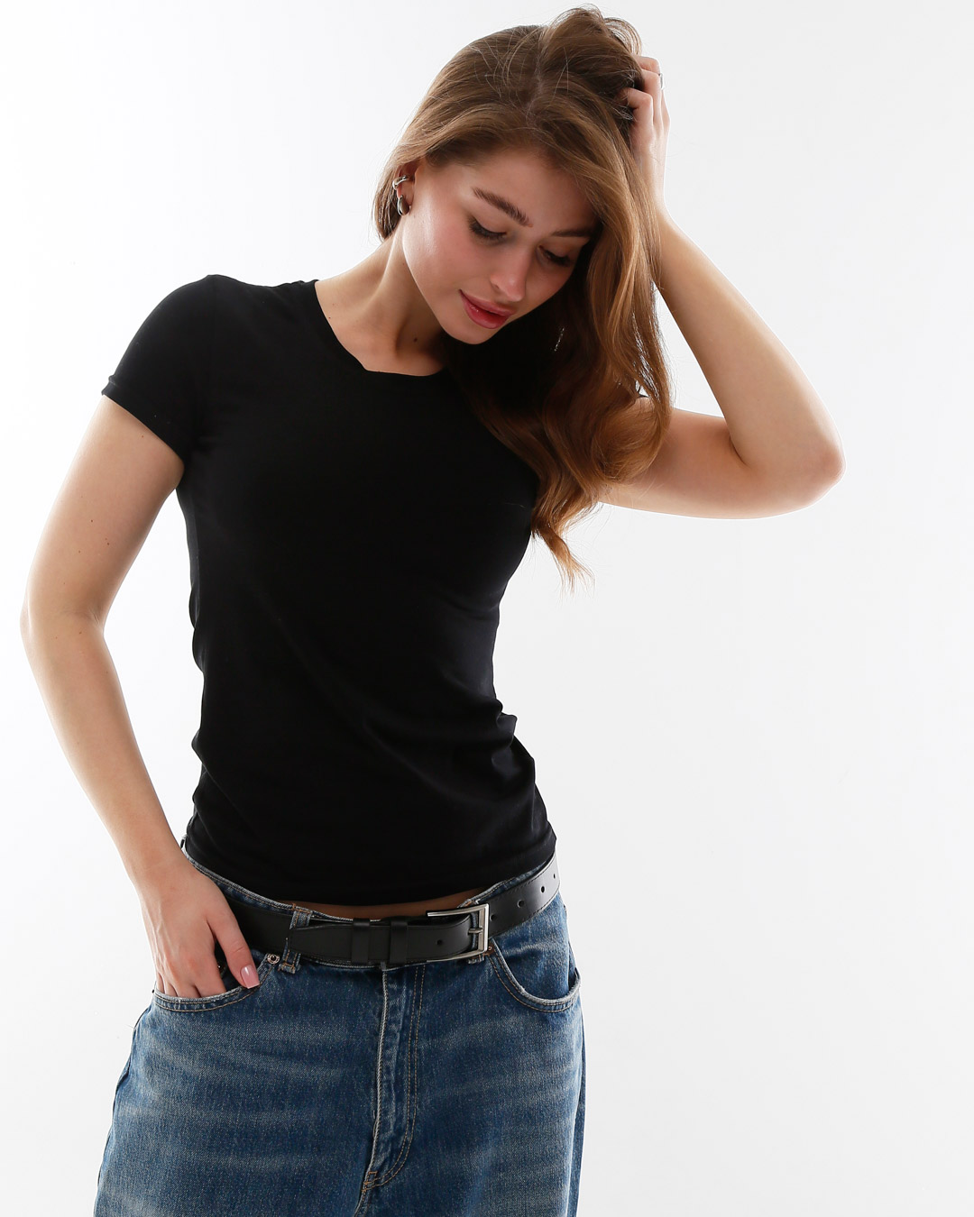 Доступные размеры :[XS, S, M, XL, L] Женская футболка. Приталенный силуэт с круглым вырезом и короткими рукавами обеспечивает идеальную посадку и комфорт. Лаконичный дизайн делает модель универсальной для базового гардероба, легко сочетается с другим.. Читать полностью