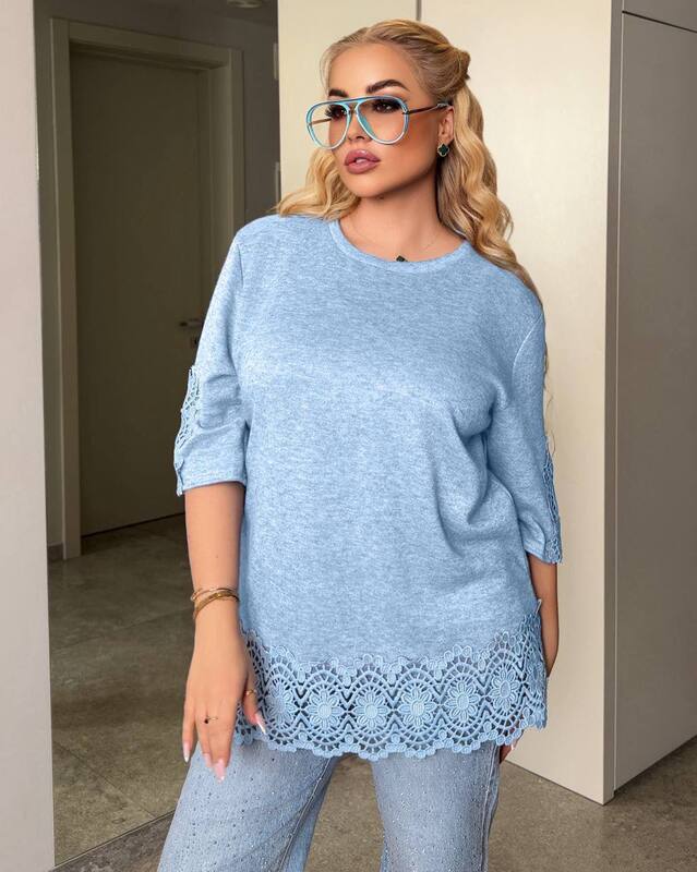 • Виміри по готовому виробу50-52О/г 110,о/б 120, рукав від плеча 34Довжина з мереживом 7454-56О/г 120,о/б 130, рукав від плеча 34, довжина. З мереживом 7658-60О/г 130,о/б 140, рукав від плеча 35, довжина з мереживом 78 см