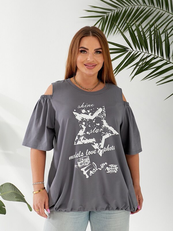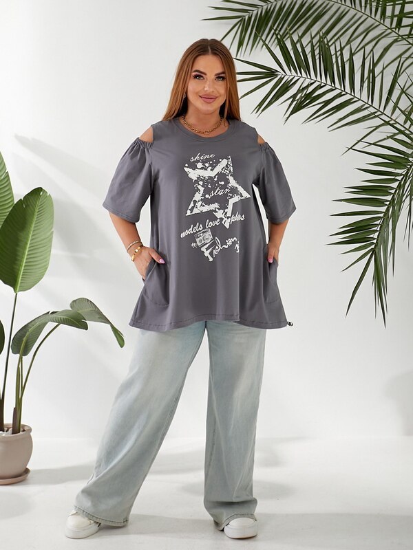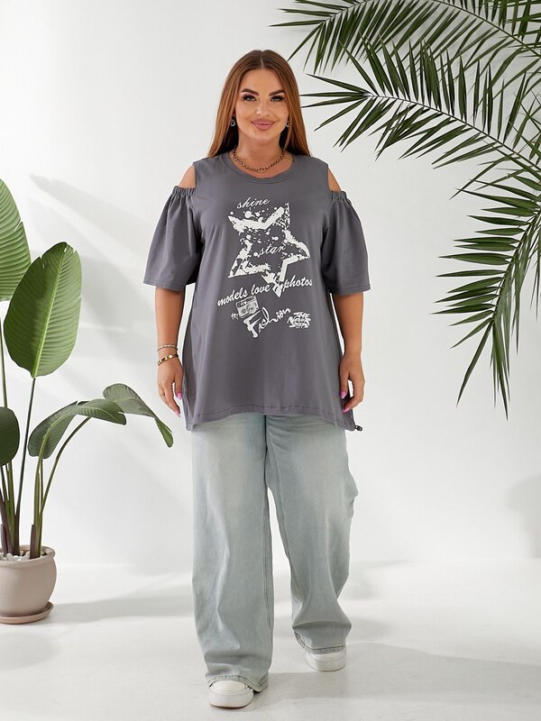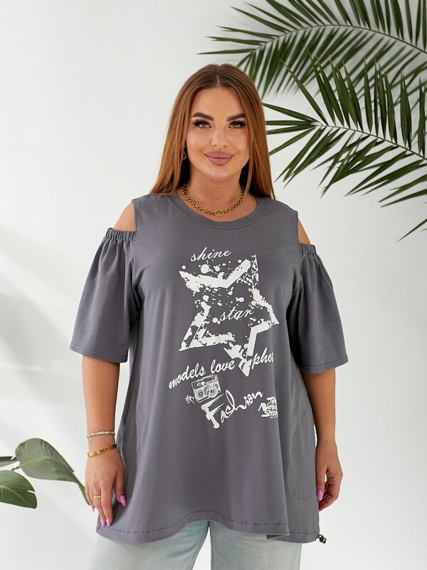 Доступные размеры :[56-58, 60-62, 64-66, 68-70] довжина 80 смНиз футболки можна зафіксувати на резинку,56-58:ог 128 см, ос 160 см60-62: ог 136 см, ос 168 см64-66: ог 144 см, ос 176 см68-70: ог 152, ос 186 смДлина по спинке: 80 смРост модели: 170 смСе.. Читать полностью