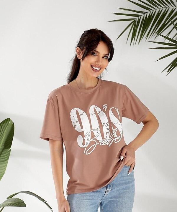 Главный акцент этой футболки — крупный декоративный принт в эстетике 90-х, который добавляет образу характер, легкую дерзость и модное настроение. За счет этого даже самый простой комплект с джинсами, шортами, юбкой или спортивными брюками выглядит интереснее и свежее. Свободный крой делает посадку особенно комфортной, не сковывает движения и хорошо смотрится на разных типах фигуры. Такая футболка легко сочетается с повседневной обувью, жакетами, рубашками и легкими куртками, позволяя создавать множество удобных и стильных образов.