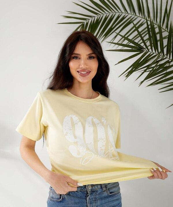 Футболка женская из кулира с принтом и свободным кроем весенняя k-128382