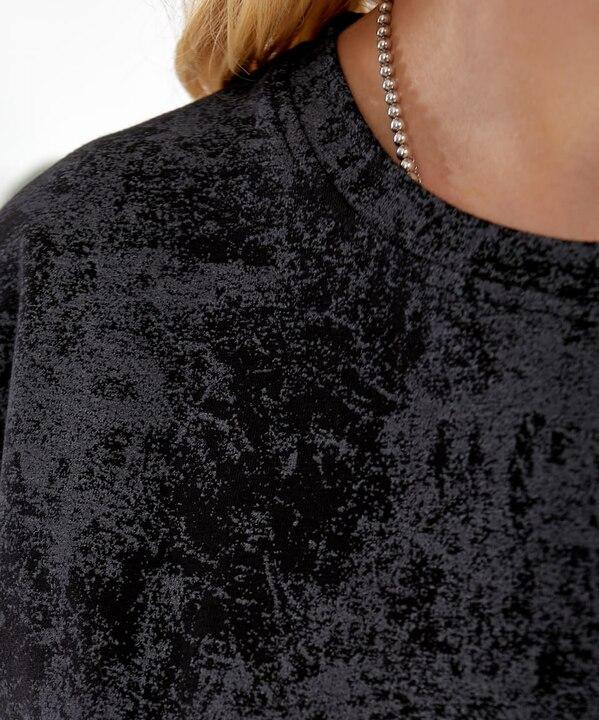 Главная особенность этой модели — эффект "вареной" ткани, благодаря которому футболка выглядит более интересно, современно и характерно. Такой визуальный эффект делает вещь не просто базовой, а действительно заметной и модной. Футболка хорошо смотрится как самостоятельный акцент в образе и легко сочетается с джинсами, спортивными брюками, шортами, юбками и другой повседневной одеждой. За счет лаконичного фасона она подходит для самых разных сочетаний и позволяет создавать как более спокойные, так и более трендовые городские образы.