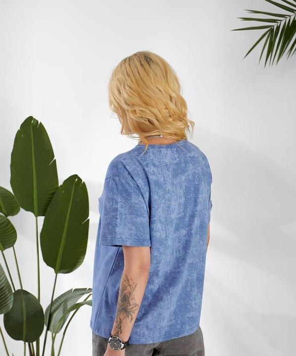Главная особенность этой модели — эффект "вареной" ткани, благодаря которому футболка выглядит более интересно, современно и характерно. Такой визуальный эффект делает вещь не просто базовой, а действительно заметной и модной. Футболка хорошо смотрится как самостоятельный акцент в образе и легко сочетается с джинсами, спортивными брюками, шортами, юбками и другой повседневной одеждой. За счет лаконичного фасона она подходит для самых разных сочетаний и позволяет создавать как более спокойные, так и более трендовые городские образы.