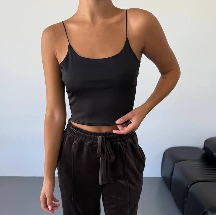 Отзывы о Топ женский укороченный базовый облегающий на бретелях однотонный k-128005
