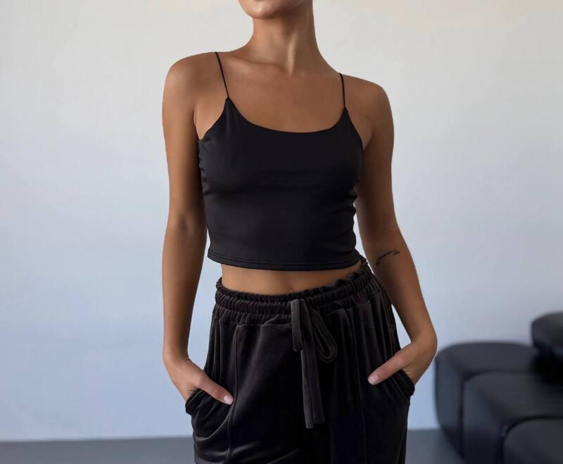 Топ женский укороченный базовый облегающий на бретелях однотонный k-128005
