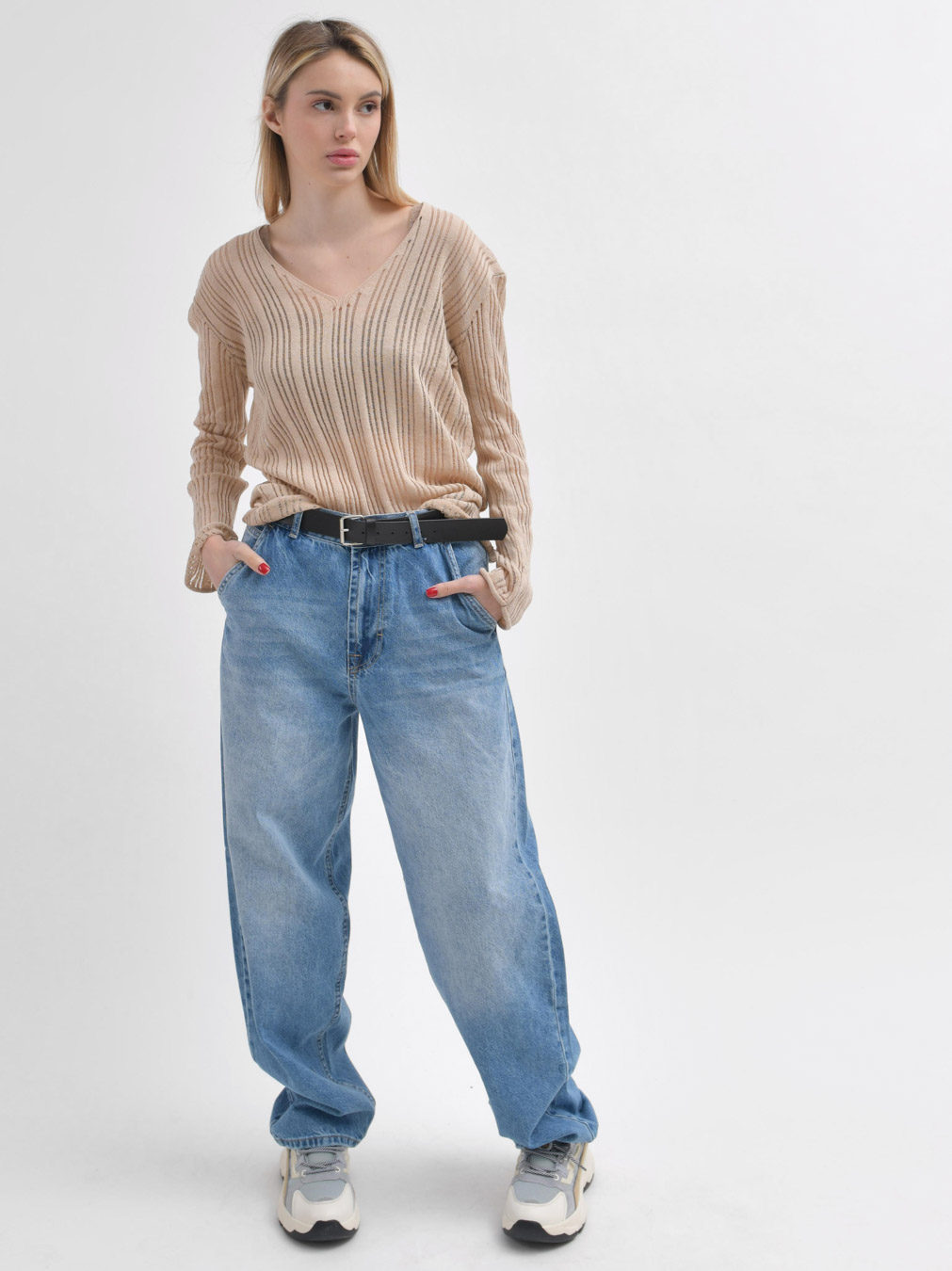 Доступные размеры :[S] Размер S:Длина внешнего шва:100Длина внутреннего шва:74Длина изделия:104Обхват бедер:96Обхват талии:70Ширина штанины:31Ширина штанины:20Женские джинсы baggy – отличный выбор для активного образа жизни. Широкий силуэт в сужающих.. Читать полностью