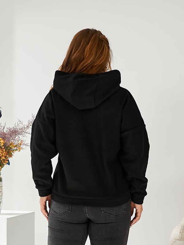 Капюшон добавляет практичности и защищает от ветра, а вместительная карман-кенгуру не только удобна для хранения мелочей, но и создаёт характерный спортивный акцент. Чёрный цвет придаёт универсальности — худи легко сочетается с джинсами, брюками или спортивными штанами, формируя базовый повседневный образ.