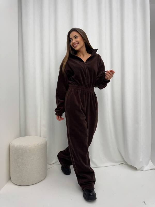 Этот комбинезон легко вписывается в повседневный гардероб: надевайте его с грубыми ботинками, кроссовками или утеплёнными уггами, добавляйте жилет, куртку или пальто — и получайте готовый образ без сложных сочетаний. Модель отлично подходит для прогулок, поездок, загородных выходных и уютных домашних сценариев, когда хочется выглядеть собранно и при этом чувствовать себя максимально комфортно.