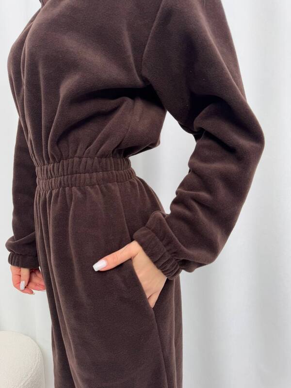 Тёплый женский комбинезон из турецкого флиса «Полар» создан для тех дней, когда хочется максимального уюта без лишних усилий в образе. Мягкий, приятный к телу материал деликатно согревает, не колется и комфортно ощущается даже при длительной носке. Комбинезон красиво «собирает» силуэт за счёт резинки на талии: посадка получается аккуратной и женственной, при этом движения остаются свободными и естественными.