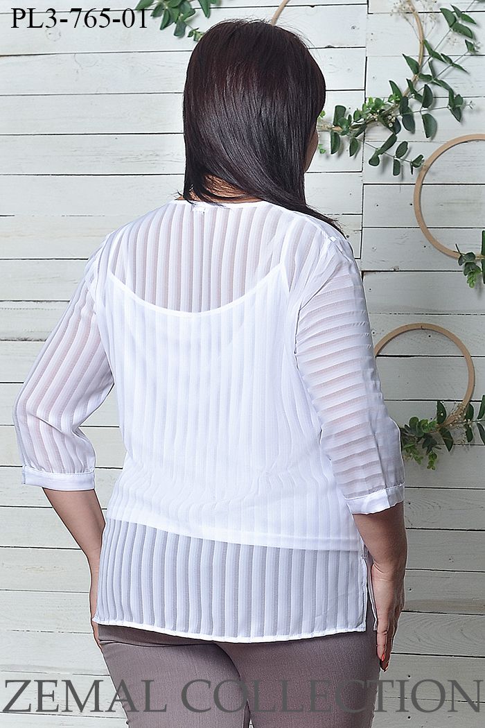 Доступные размеры :[52, 58] Комплект, состоящий из шифоновой блузы и трикотажной майки. Блуза прямого силуэта с рукавом ¾. Застёжка на пуговицы в виде планокПроизводство: УкраинаСезон: весна,летоТкань: шифон + трикотажСостав: Полиэфир – 100%Цвет: Бел.. Читать полностью