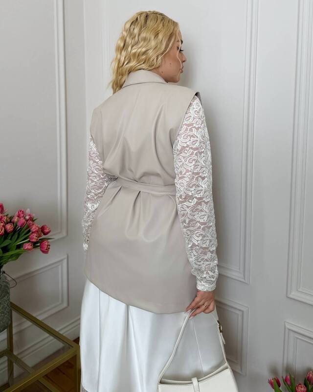- Ткань: Мереживний лонг+ подовжена жилетка з еко шкіри