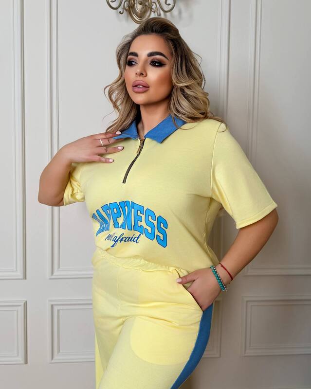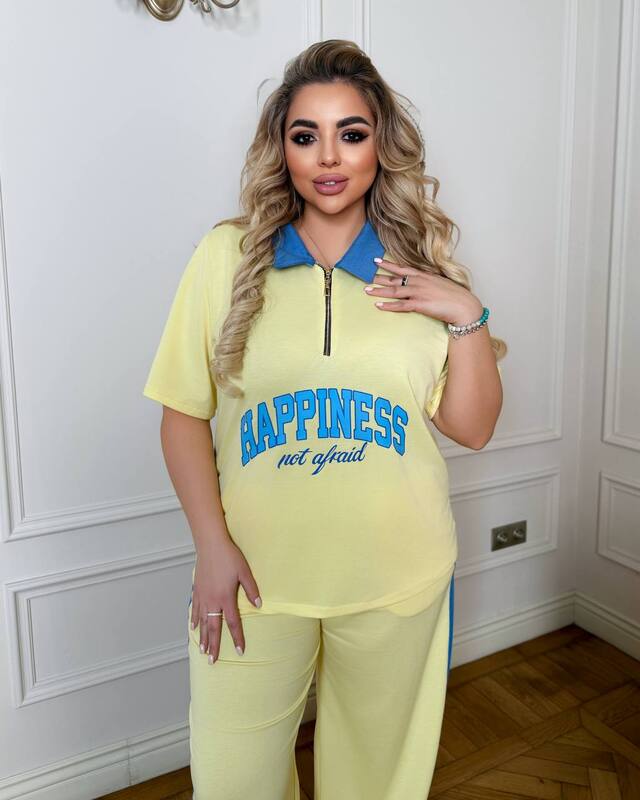 • Довжина кофти:73/74/75/76 смДовжина рукава:41смДовжина брюк :106/107/108/109смОбʼєм Грудей кофти :48-50:100-11052-54:110-11856-58:118-12660-62:126-135Можна брати до грудей 143, але не буде така вільна кофта!Обʼєм стегон:48-50 до 11552-54 до 12556-58 до 13560-62 до 145Тканина тягнеться!; Талія на резинці!