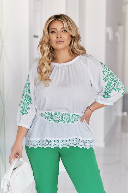 - Ткань: Блузка: штапель + апплікація . Брюки: Костюмка діагональ.