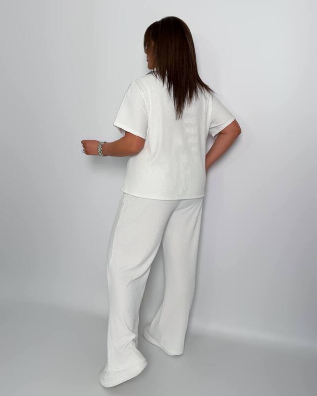 Ткань в рубчик на хлопковой основе делает комплект особенно приятным в носке. Материал мягкий, комфортный, хорошо смотрится в готовом изделии и придает образу выразительную фактуру без лишней вычурности. Костюм легко вписывается в повседневный гардероб, хорошо сочетается с кедами, слипонами, лоферами и другой удобной обувью. Это отличный выбор для женщин, которым нужен стильный, удобный и практичный комплект, способный подчеркнуть вкус, подарить комфорт и сделать ежедневный образ более современным и привлекательным.
