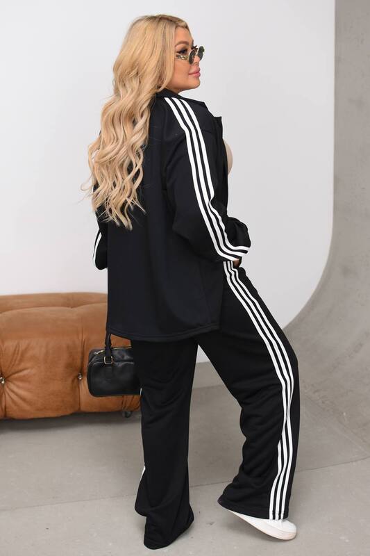 Ткань турецкое пенье придает модели ощущение качества и премиальности. Материал приятный в носке, мягкий, комфортный для тела и хорошо подходит для активного ритма дня. Костюм не выглядит перегруженным, но при этом имеет выразительный характер за счет контрастных полос по рукавам и по бокам брюк. Именно такие детали делают комплект более интересным, динамичным и современным, добавляя в образ легкий спортивный акцент без потери женственности и аккуратности.