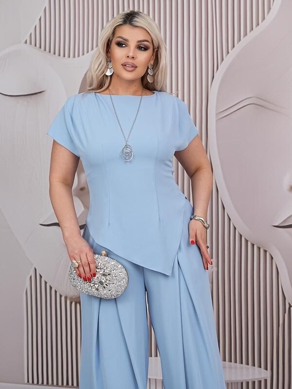 Женский костюм-двойка с асимметричной блузой и широкими брюками палаццо — стильный и выразительный комплект для теплого сезона, который помогает выглядеть элегантно, современно и уверенно. Такой образ хорошо подходит для повседневных выходов, встреч, работы, праздников и других случаев, когда хочется выглядеть собранно, но при этом чувствовать себя свободно и комфортно в течение дня.