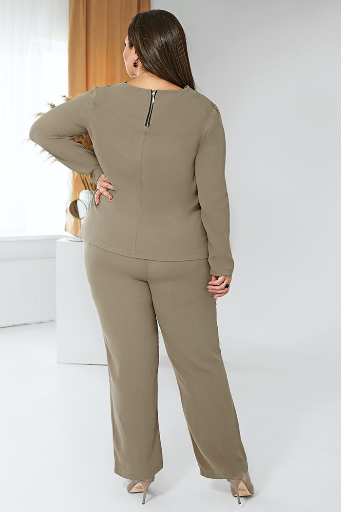 Отзывы о Костюм-двойка женский из крепа с асимметричной блузой и расклешенными брюками летне-осенний M-1027-PL4-495-30