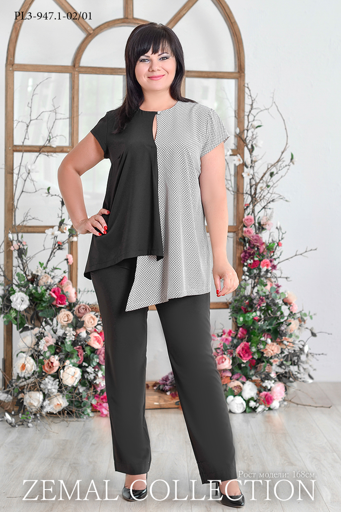 Отзывы о Костюм-двойка женский из вискозы софт с асимметричной блузой и прямыми брюками весенне-летний M-1032-PL3-947.1-02-01