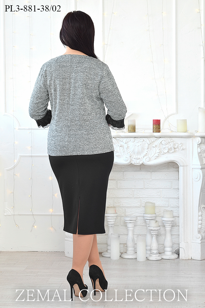 Доступные размеры :[48] Трикотажный костюм, состоящий из джемпера и юбки Джемпер полуприлегающего силуэта с рукавом ¾. Низ рукавов заканчивается кружевным воланом Юбка «карандаш» – на резинке . Длина юбки – ниже коленПроизводство: УкраинаСезон: весна.. Читать полностью
