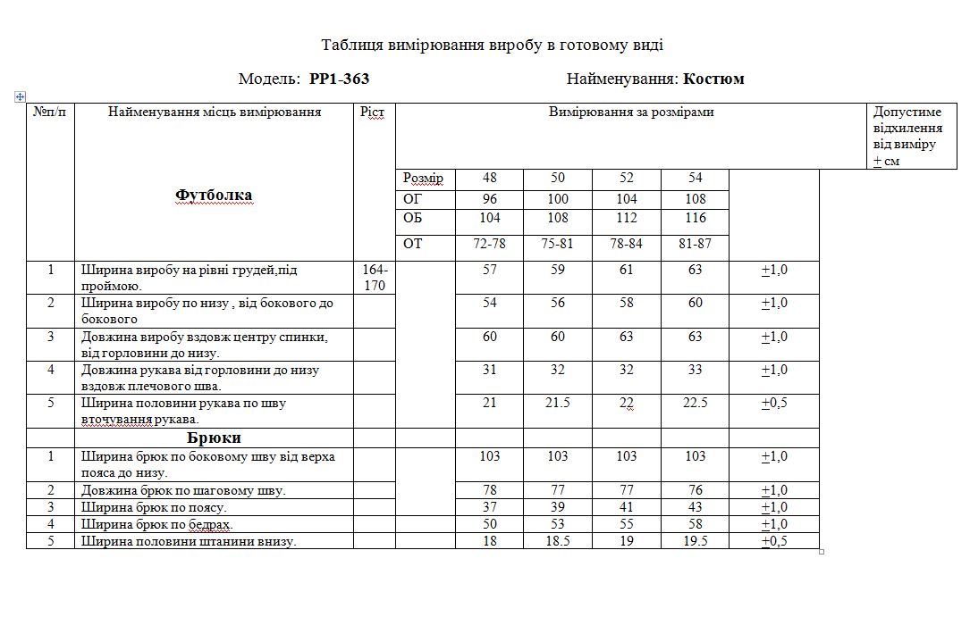 - Вид костюма: