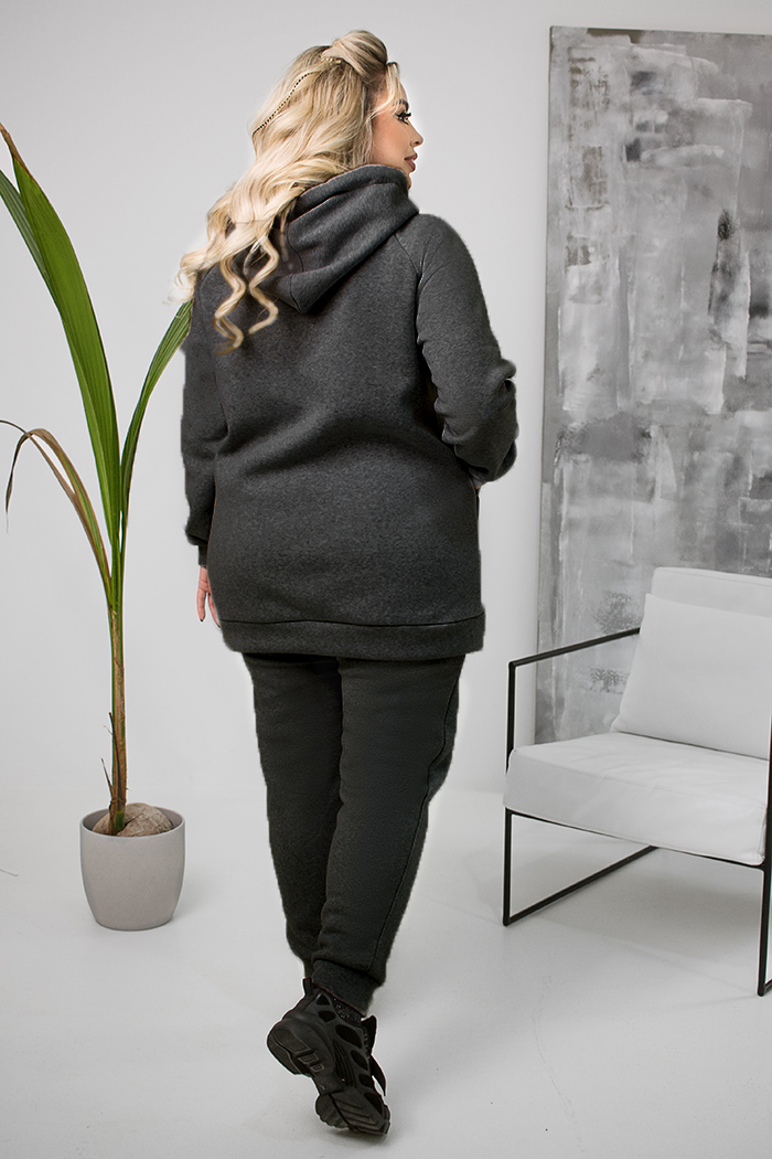 Доступные размеры :[48, 50, 52] Трикотажный женский костюм состоит из куртки и брюк. Куртка с капюшоном и застегивается на молнию. По полочке карман – «кенгуру». Рукав – реглан, с манжетой. По низу куртки пояс. Брюки прямые на цельнокроеном поясе, с .. Читать полностью