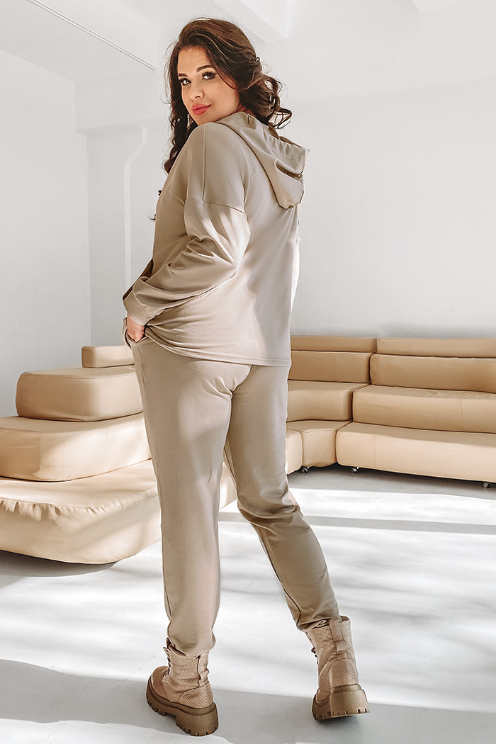Доступные размеры :[46, 48] Cпортивный костюм, состоящий из худи и брюк, покоряющий, на первый взгляд, простотой. Худи с капюшоном и карманом «кенгуру», без пояса. Рукава на манжетах. Брюки с поясом на резинке, с боковыми карманами, зауженные к низуП.. Читать полностью