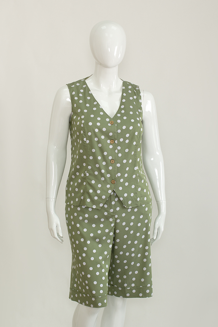 Доступные размеры :[50, 52, 54, 56] Костюм, що складається з шортів та жилету. Жилет класичного крою. Застібка на гудзики. Виріз горловини V – образний. Внизу кути бортів фігурні. Шорти короткі, пояс на резинці по спинці. Попереду гульфік. Бічні кише.. Читать полностью