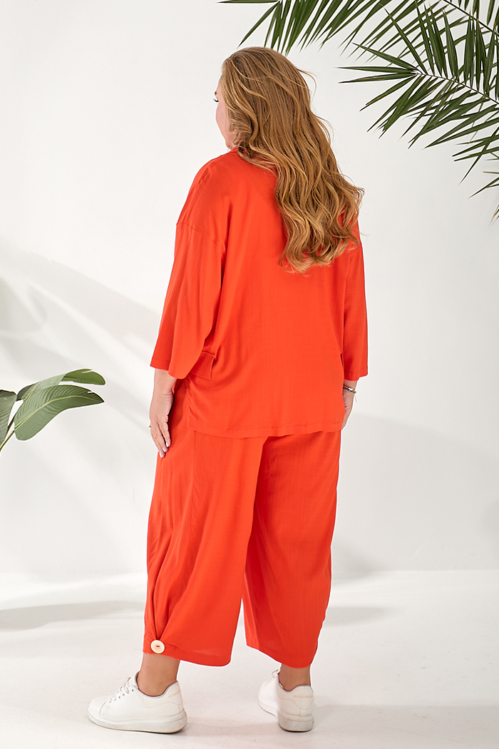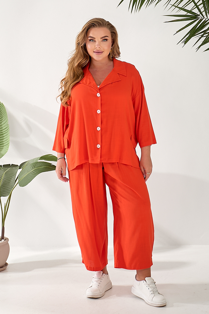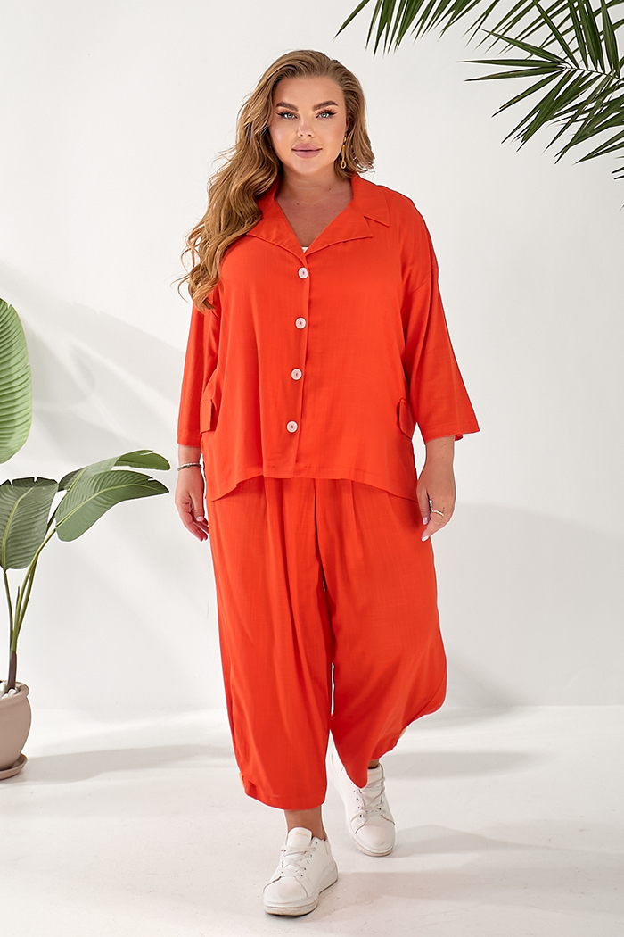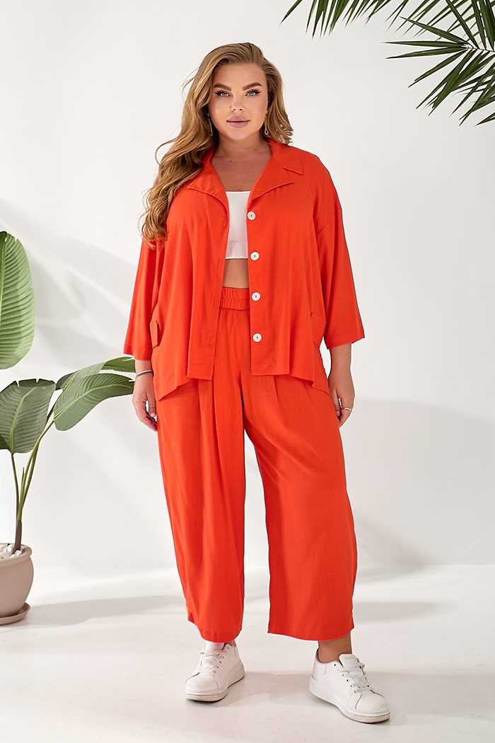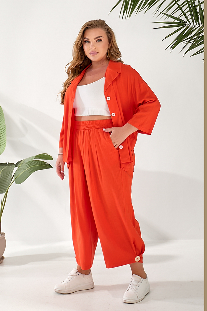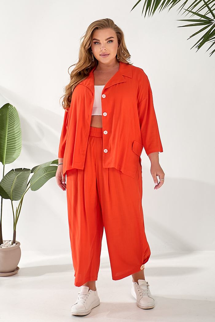 Доступные размеры :[52, 54, 58] Костюм складається з жакету та штанів. Жакет вільного крою із застібкою на гудзики. Оздоблювальні клапани на поличках. Комір з лацканом. Рукав 3/4. У бічних швах розрізи. Штани прямого крою, широкі. На передніх половин.. Читать полностью
