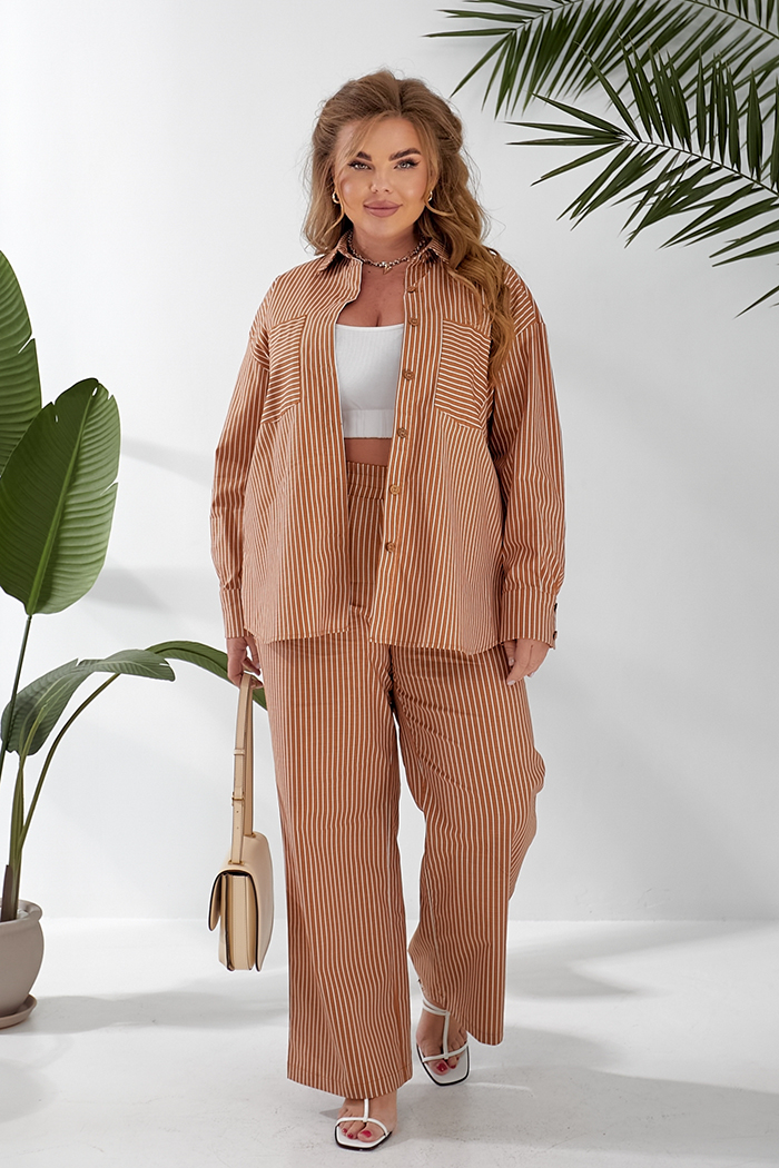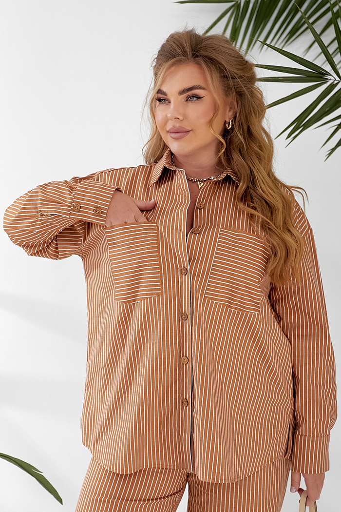 Доступные размеры :[52, 54, 56, 58, 60, 62] Костюм, що складається з сорочки та штанів Сорочка вільного крою з довгим рукавом із манжетами, плече спущене. На поличках накладні кишені. Відкладний комір. Застібка на гудзики У бічних швах розрізи Штани .. Читать полностью