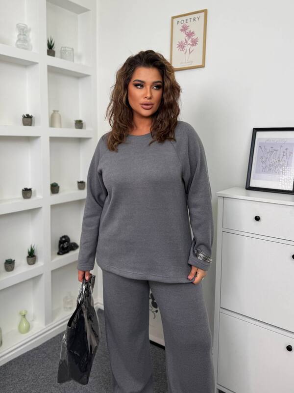Цей костюм стане вашим улюбленим вибором на кожен день — він однаково добре підходить для прогулянок, зустрічей або затишного відпочинку вдома. Завдяки універсальному сірому кольору, костюм чудово комбінується з пальто, пуховиками чи стильними аксесуарами, створюючи гармонійні та витончені образи.