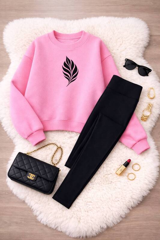 Лосины в этом наборе — универсальная база: они гармонично смотрятся со свитшотом, не перегружают образ и позволяют легко комбинировать костюм с другими вещами. Высокая посадка и эластичная талия помогают добиться удобной фиксации без давления, а плотная структура ткани визуально выравнивает силуэт и дарит уверенность в каждом движении.